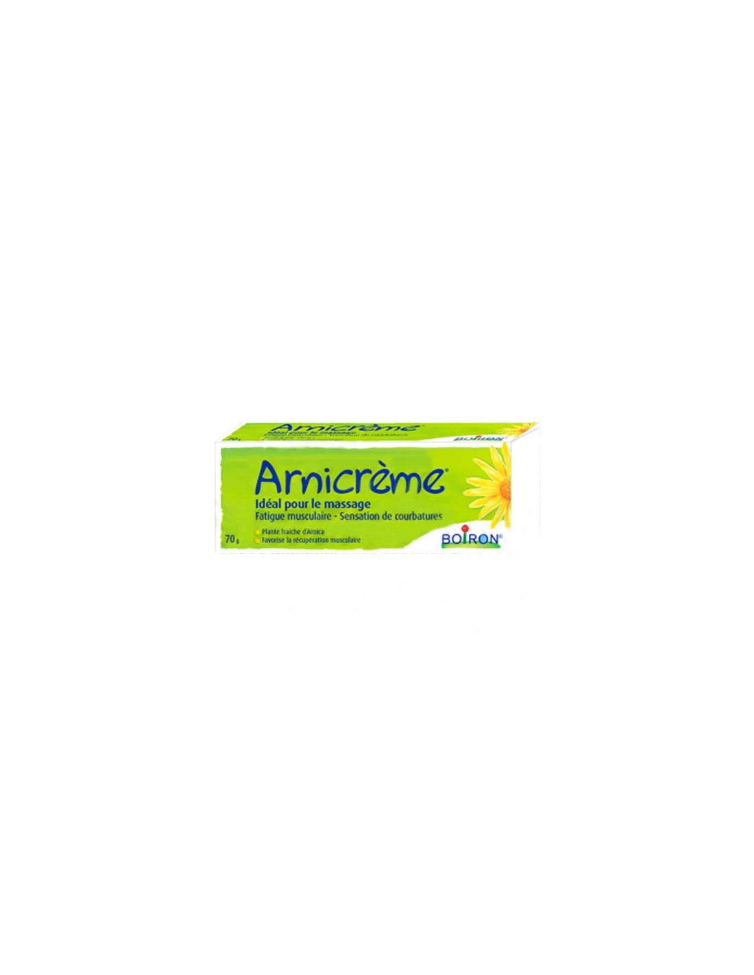 Avec sa texture légère et fluide, la crème de massage Arnicrème de Boiron ne laisse pas de voile gras et ne dessèche pas non plus la peau. Elle est formulée sans parfum et sans parabènes.