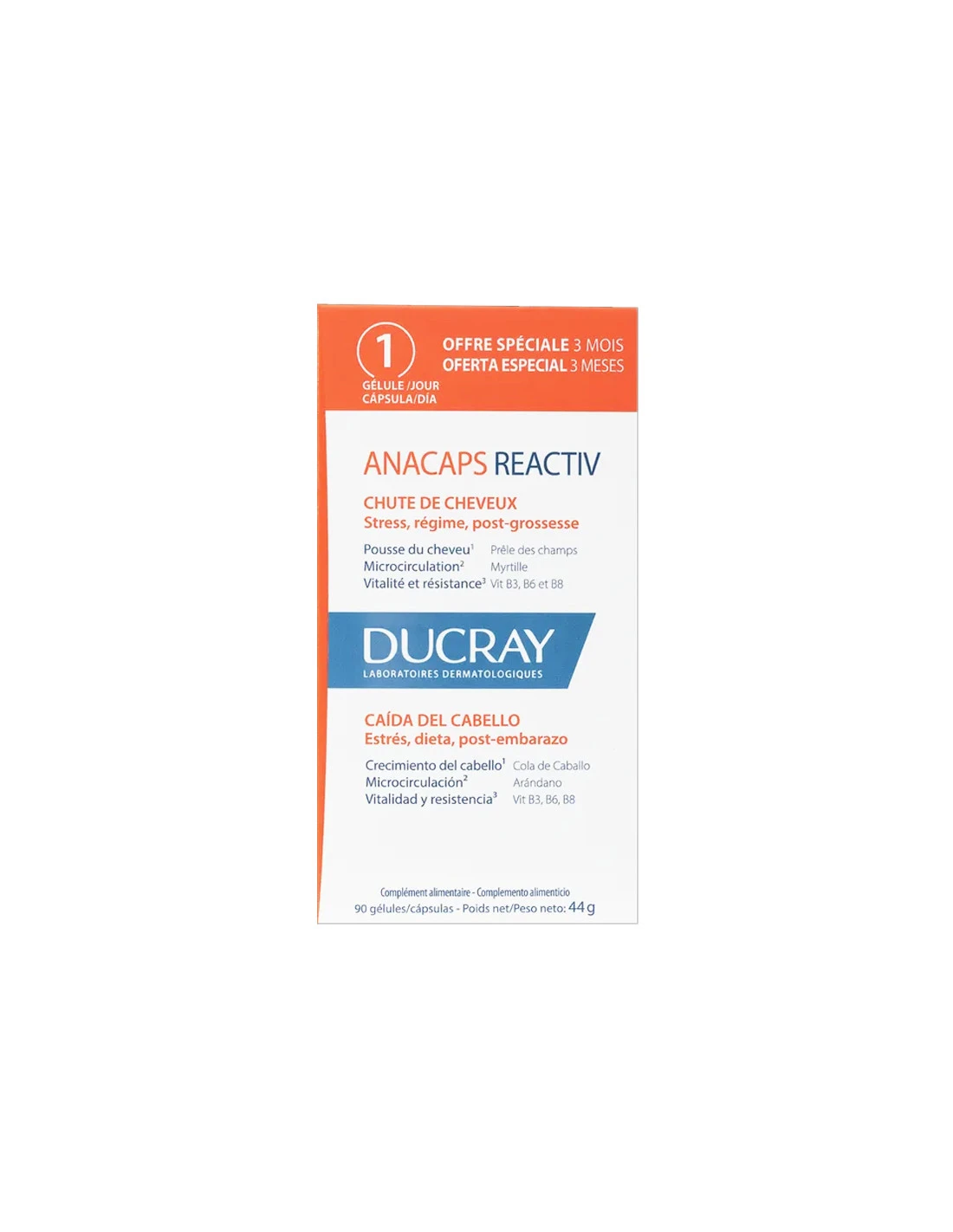 Le complément alimentaire ANACAPS REACTIV participe au maintien d’un cheveu en bonne santé dans le cadre de chutes de cheveux occasionnelles et passagères liées au stress, à la fatigue, post-accouchement, au changement de saison, à un régime alimentaire restrictif.