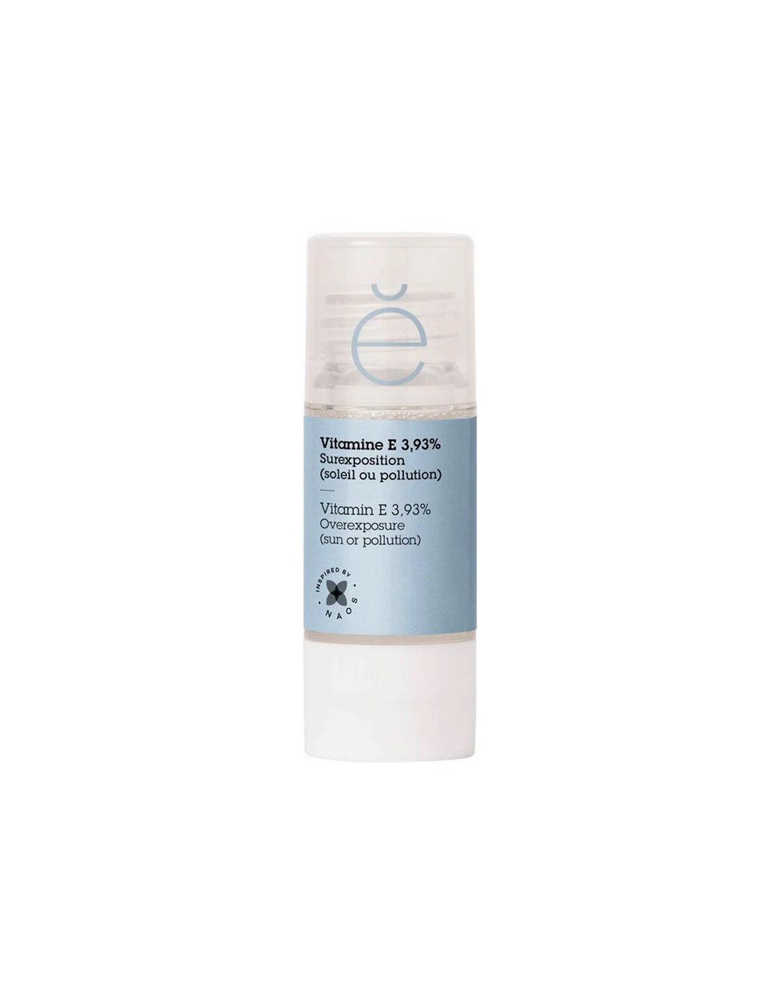 Puissant anti-oxydant, la vitamine E renforce les capacités naturelles de défense de la peau vis-à-vis des agressions environnementales et du stress (pollution, UV, mode de vie, fumée de cigarette…). Elle protège du vieillissement cutané et prévient le vieillissement cutané prématuré induit par les surexpositions (soleil, pollution).