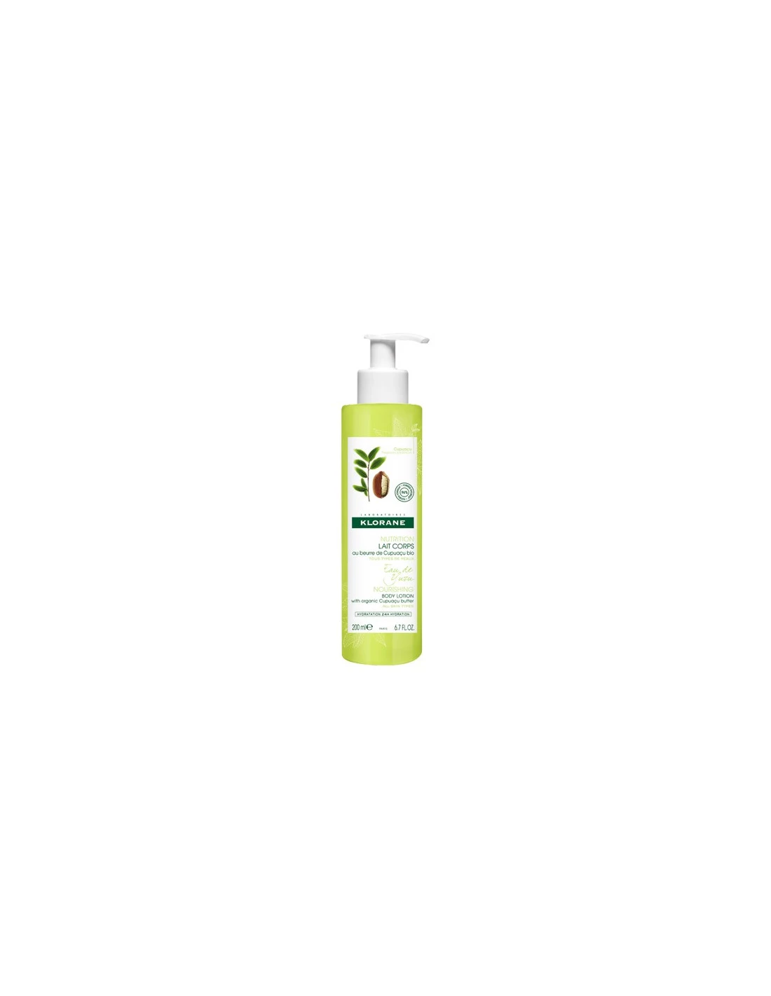 Klorane Lait Corps Eau de Yuzu se compose de beurre de Cupuaçu bio (Theobroma grandiflorum) pour nourrir intensément la peau sèche.