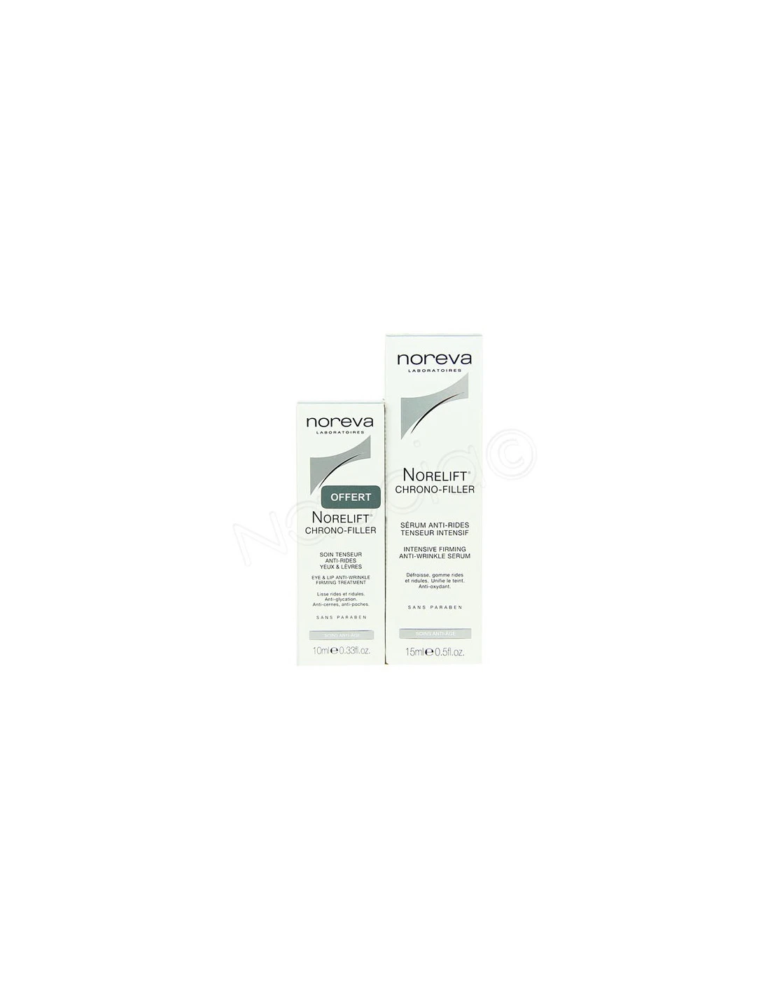Offre Noreva: Pour l’achat du sérum anti-rides Norelift Chrono-Filler, le soin tenseur anti-rides yeux & lèvres est offert! Soit un cadeau d’une valeur de 20€!