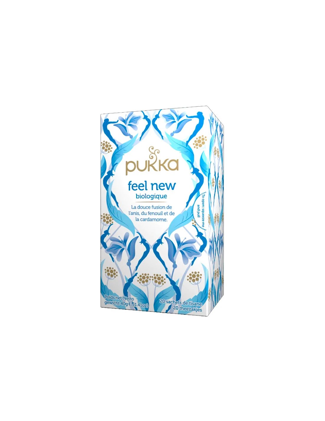 La Tisane Feel New Bio Pukka à base d’anis biologique, de graines de fenouil, de cardamome, de racines de réglisse, de graines de coriandre et de racines de curcuma est un mélange rafraîchissant à déguster tout au long de la journée. Ingrédients d’origine éthique.