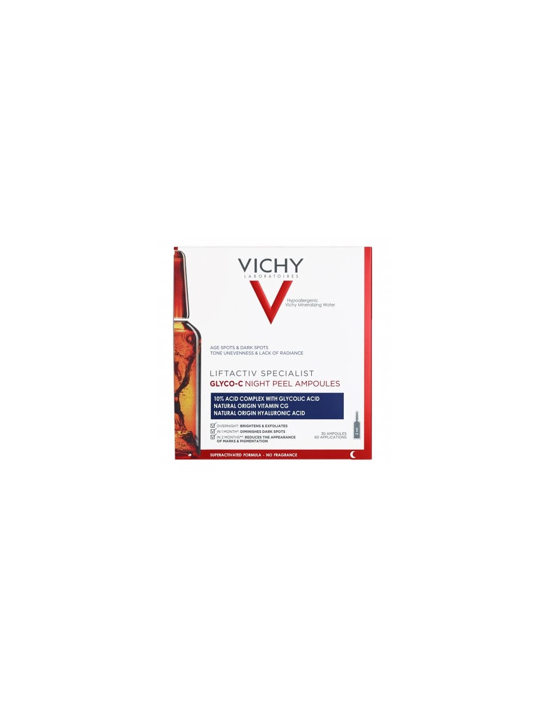 Les 30 ampoules Glyco-C Vichy Liftactiv est une innovation anti-âge dans un format ampoule qui cible différents types d’hyperpigmentation (taches brunes, taches pigmentaires liées à l’âge et les marques d’acné). Convient à tous les types de peaux.